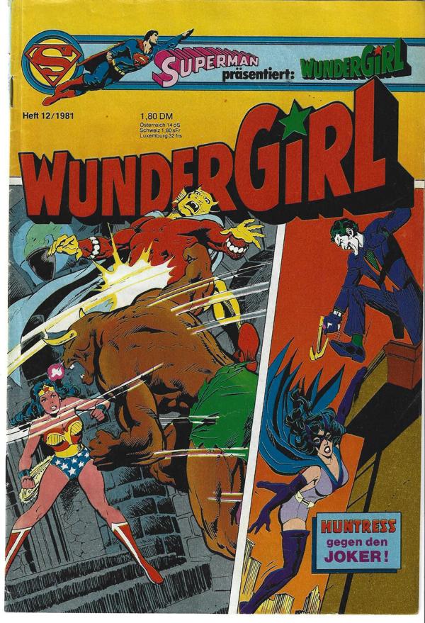 Superman präsentiert: WunderGirl Heft 12/ Dezember 81 Huntress gegen den Joker ! Ehapa Comic Verlag: Ehapa Verlag 1981Comic - Heft, 31 Seiten Format: 17,5 cm 26 cm Zustand: gut, leichte Gebrauchsspuren