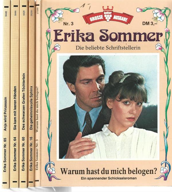 Erika Sommer Nr.3,16,60,64,65. (5 Stück)große SchriftKelter Verlag Hamburg5 Romne á 128 SeitenFormat: 13 x 18,5 x 3 cmZustand: gut, leichte Gebrauchsspuren