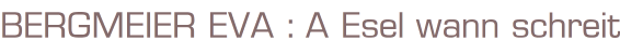 Titel: A Esel wann schreitAutor: Eva BergmeierZeichnungen: Irma Schüle-MatzdorffVerlag: Mohndruck 1984 Eva Bergmeier, Signierte ErstauflageGebundene Ausgabe, Format: 19,5 cm x 26,5 cmGewicht: 385 gZustand: gut, leichte Standspuren