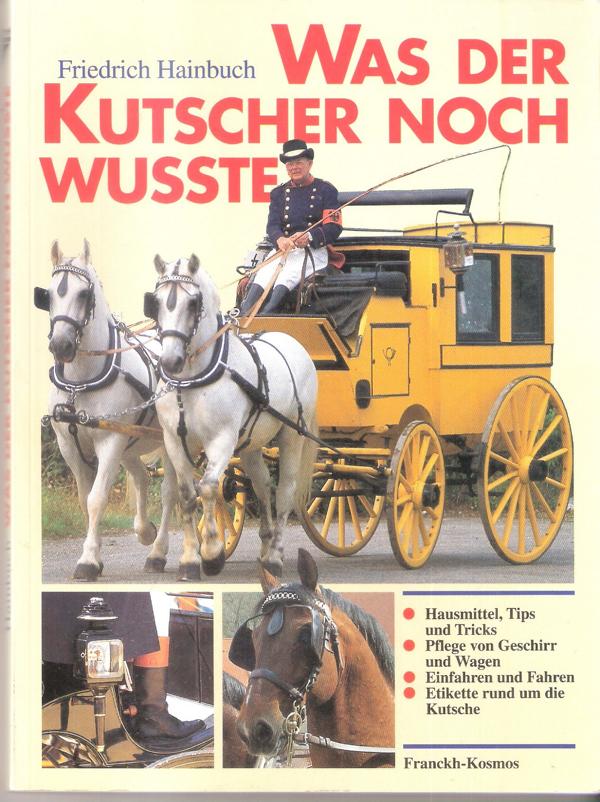 Titel: Was der Kutscher noch wusste Hausmittel, Tips und Tricks - Pflege von Geschirr und Wagen -Einfahren und Fahren - Etikette rund um die Kutsche Autor: Friedrich HainbuchISBN 344007109xVerlag: Franckh - Kosmos 1996Softcover, 103 SeitenFormat: 16 cm x 21 cm x 1 cmGewicht: 203 gZustand: gut