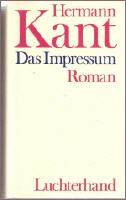 Kant Hermann - DAS IMPRESSUM (No33 - 5847) Titel: Das Impressum Autor: Hermann Kant Verlag: Luchterhand (c) 1972 Rütten & Loening Berlin ... 5,80 Euro (Kleinunternehmer im Sinne vom § 19 UStG. Es wird keine MWSt. ausgewiesen.)