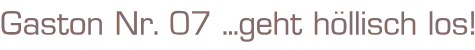 Gaston Nr.07Titel: ...geht höllisch los!Von: André FranquinISBN 3551011427Verlag: Carlsen Verlag, Reinbek bei Hamburg, 1. Auflage 1987Softcover, 46 SeitenFormat: 22 x 29,5 x 0,5 cmZustand: gebraucht, sehr gut