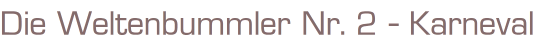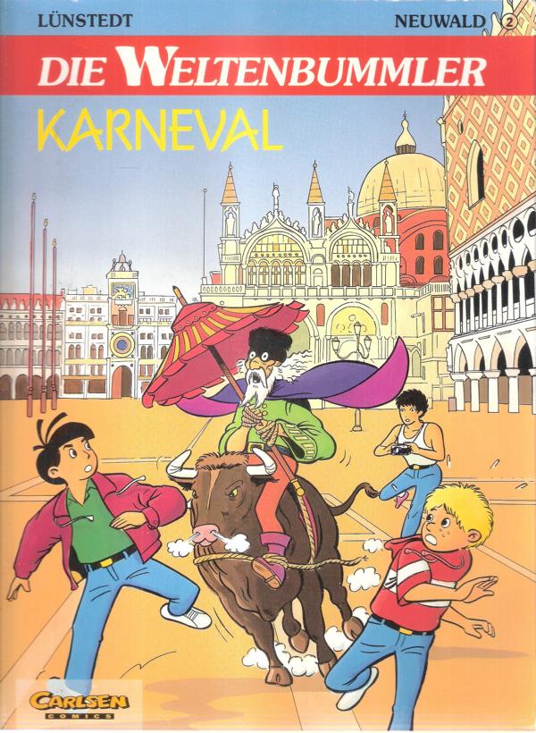 Die Weltenbummler Nr. 2 - KarnevalText: Heiner LünstedtZeichnungen: Alfred NeuwaldVerlag: Carlsen Verlag 1. Auflage 1993Softcover Heft, 46 SeitenFormat: 22 x 29,5 cmGewicht: 220 gZustand: Gebraucht, gut