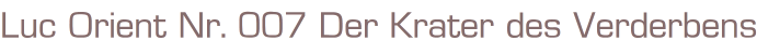 Luc Orient Nr. 7Titel: Der Krater des VerderbensText: GregZeichnungen: Eddy PaapeISBN 355101387xVerlag: Carlsen Verlag,Hamburg, 1. Aufl. 1995Softcover, 48 SeitenFormat: 22 x 29,5 x 0,5 cmGewicht: 220 gZustand: sehr gut