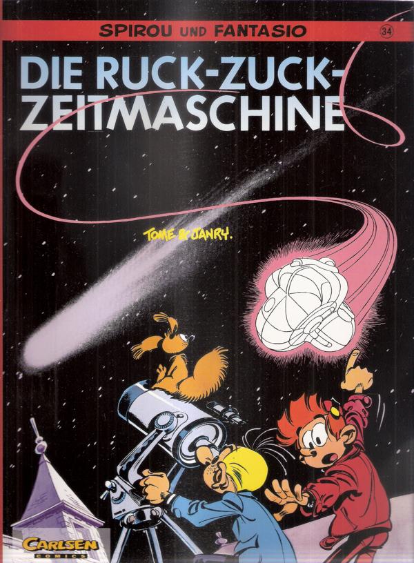 Spirou + Fantasio Nr. 34Titel: Die Ruck-Zuck-ZeitmaschineVon: Tome und JanryISBN 3551012377Verlag: Carlsen Verlag,Hamburg, 1. Auflage April 1992Softcover, 46 SeitenFormat: 22 x 29,5 x 0,5 cmZustand: sehr gut