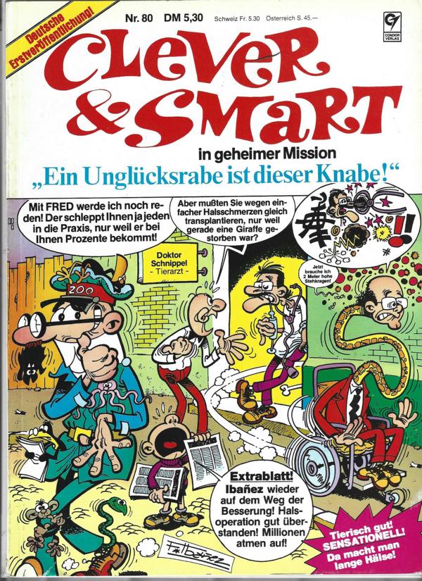 Titel: Clever & Smart Nr. 80Deutsche ErstveröffentlichungTitel: "Ein Unglücksrabe ist dieser Knabe" Ausgedacht und gezeichnet von F. Iba`nezVerlag: Condor Verlag GmbH & Co Bad Vilbel - FrankfurtSoftcover Format: 21,5 x 29,5 cmZustand: gut