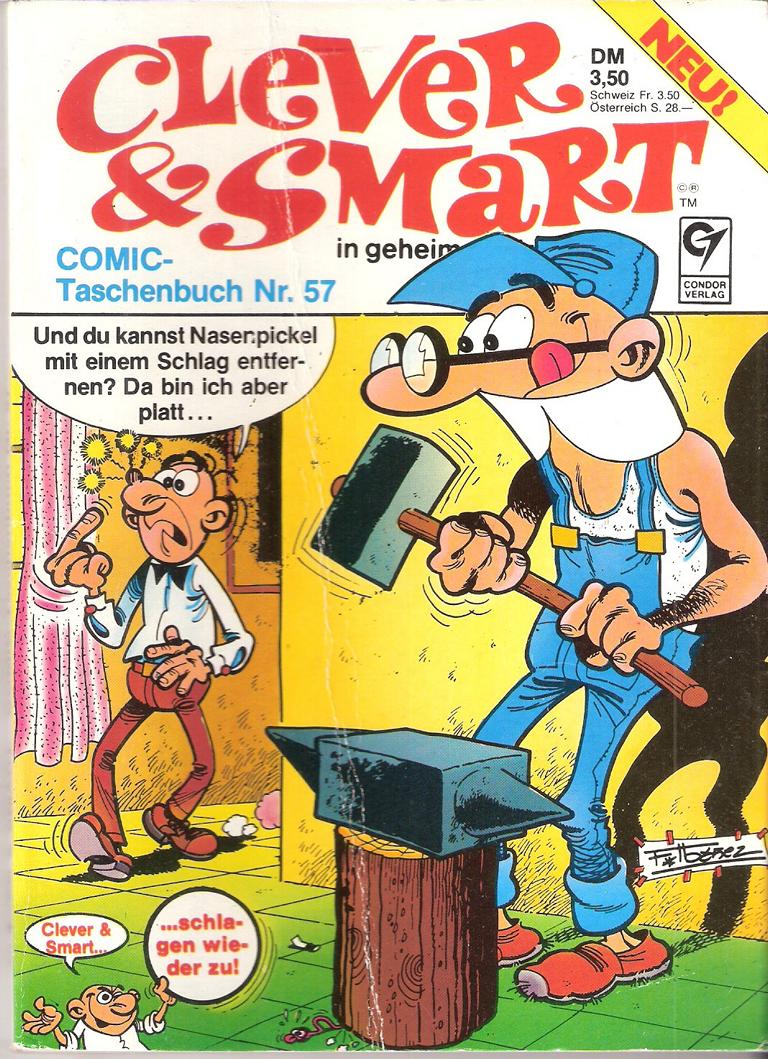 Clever & Smart in geheimer MissionComic - Taschenbuch Nr.57Text und Zeichnungen: F. IbanezVerlag: Condor VerlagTaschenbuch Format: 18,5 cm x 13 cm x 0,8 cmGewicht: 86 gZustand: gut, mit leichten Gebrauchsspuren(Cover geknickt)
