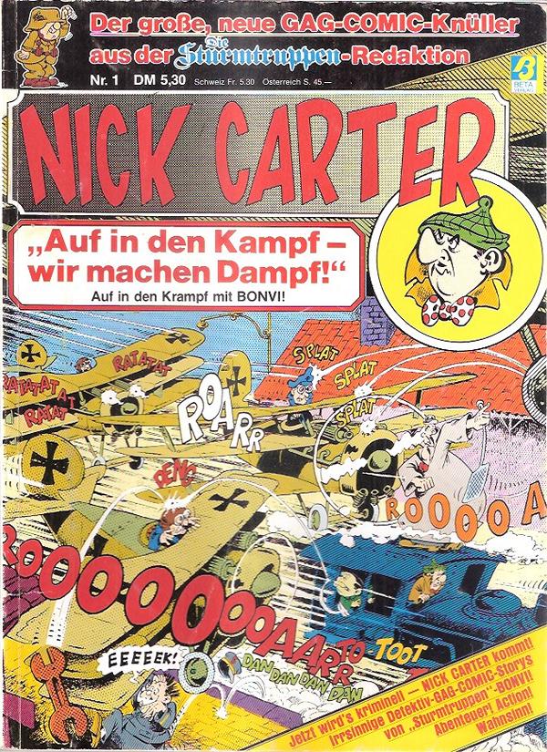 Der große, neue GAG-Comic-Knüller aus der Die Sturmtruppen - Redaktion Nick Carter - Nr.1 - " Auf in den Kampf - wir machen Dampf !"Verlag: Beta VerlagFormat: 21,5 cm x 29,5 cmGewicht: 160 gZustand: gebraucht, gut Comic