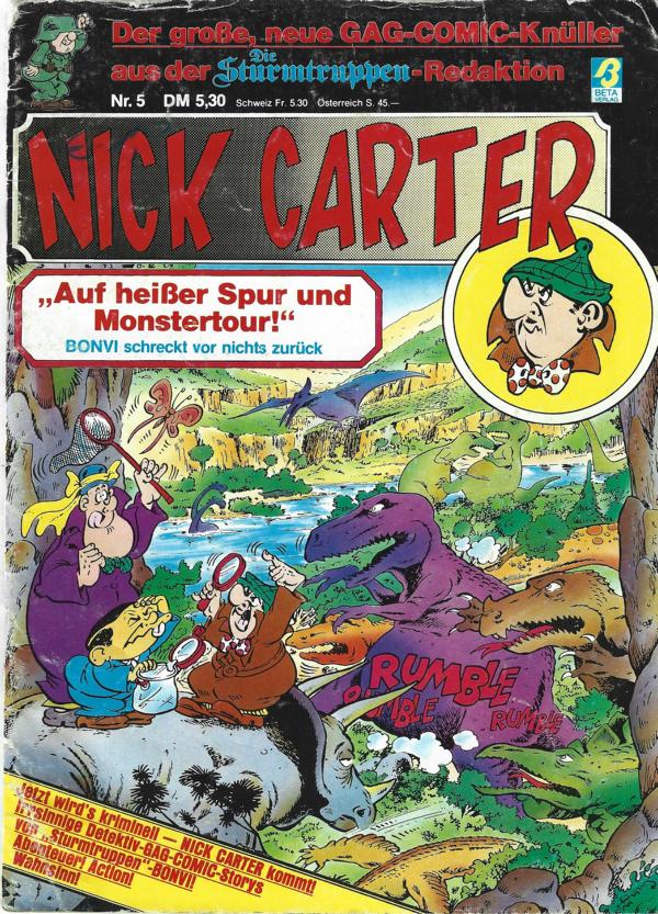 Nick Carter Nr. 5Der große neue GAG-Comic-Knülleraus der "Die Sturmtruppen" - RedaktionTitel: "Auf heißer Spur und Monstertour"Verlag: Beta Verlag GmbH SoftcoverFormat: 21 cm x 29 cmZustand: Gebrauchsspuren am Cover,ansonsten guter ZustandComic