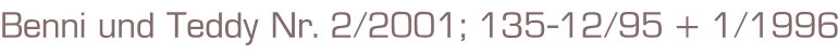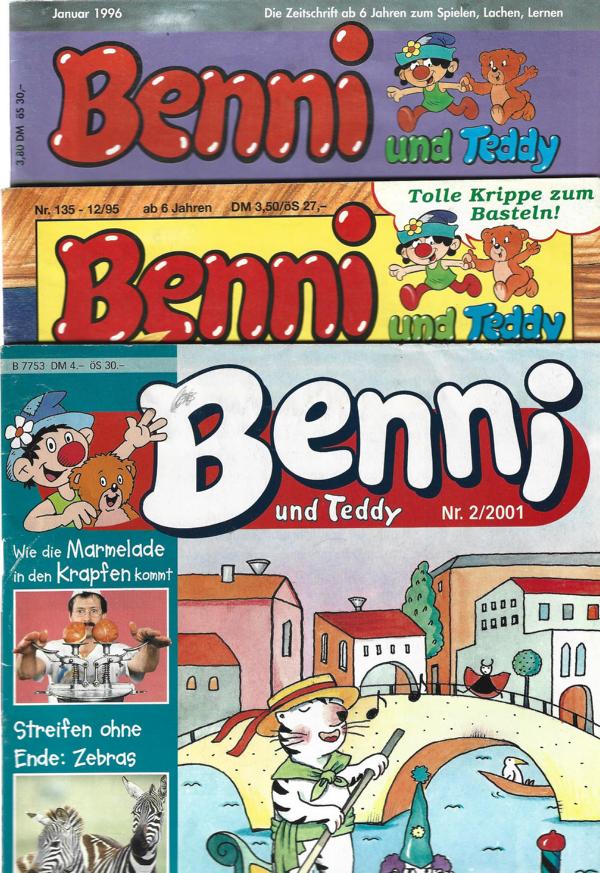 Benni und Teddy Nr. 2/2001; 135-12/95 + 1/1996Komplett mit BastelbögenVerlag: Johann Michael Sailer, Nürnberg3 Magazine für Kinder zum lernen, spielen und bastelnFormat: 3 x 21 x 27 cmZustand: gut
