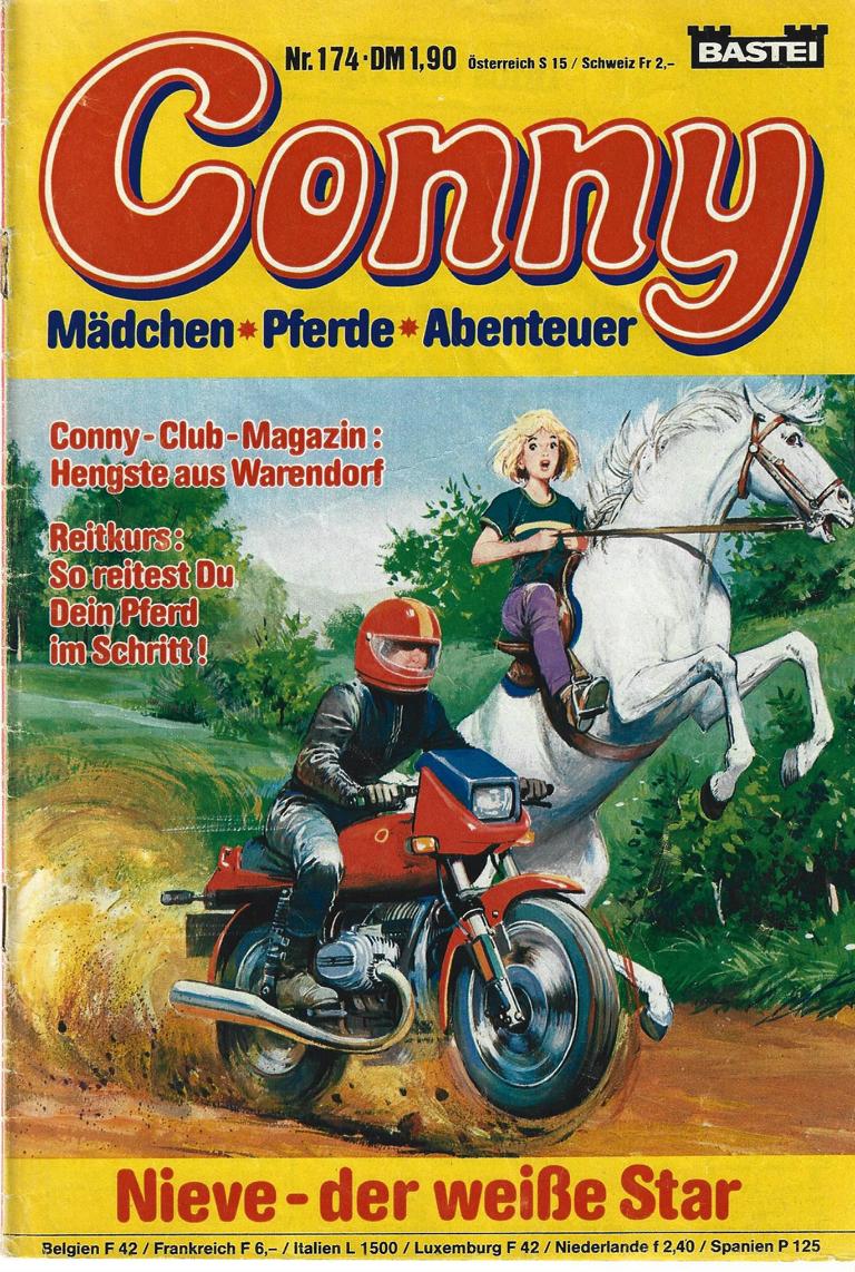 Conny - Mädchen - Pferde - Abenteuer Nr. 174Titel: Nieve - der weiße Star.Verlag: Bastei, Bergisch Gladbach ab 1983Comic-Heft 29 SeitenFormat: 17,5 x 25,8 cmZustand: Mittelteil Seite 16-18 fehlt,leichte Gebrauchsspuren
