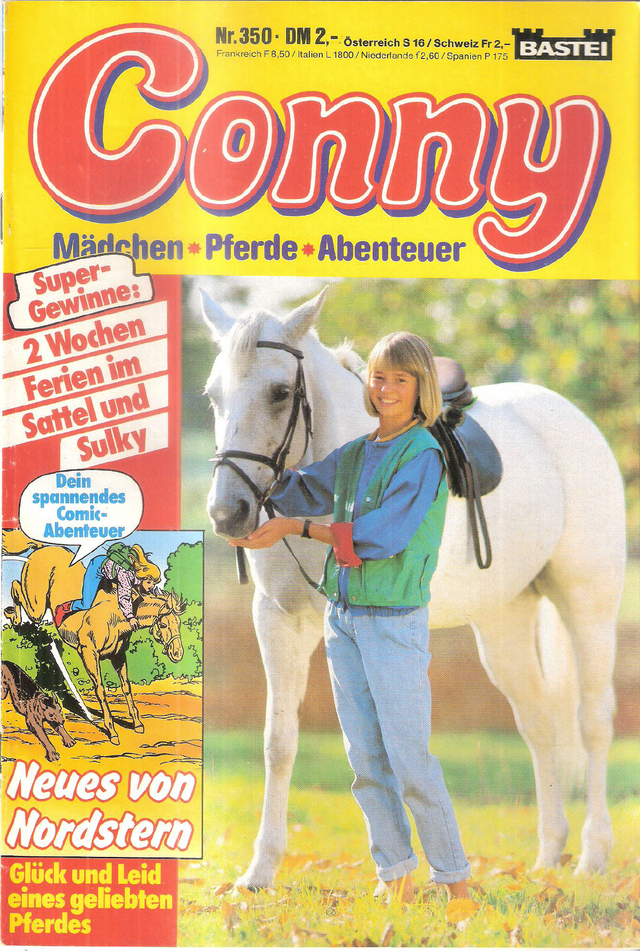 Conny - Mädchen - Pferde - Abenteuer Nr. 350- nicht mehr lieferbar!!! 8-23Titel: Neues vom NordsternVerlag: Bastei, Bergisch Gladbach ab 1983Comic-Heft 29 SeitenFormat: 17,5 x 25,8 cmGewicht: 57 gZustand: gut, Mittelteil Seite 15-18 fehlt