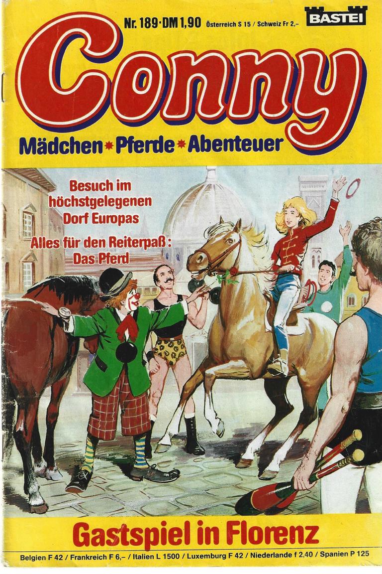 Conny - Mädchen - Pferde - Abenteuer Nr. 189Titel: Gastspiel in Florenz.Verlag: Bastei, Bergisch Gladbach ab 1983Comic-Heft 29 SeitenFormat: 17,5 x 25,8 cmZustand: komplett, leichte Gebrauhsspuren .