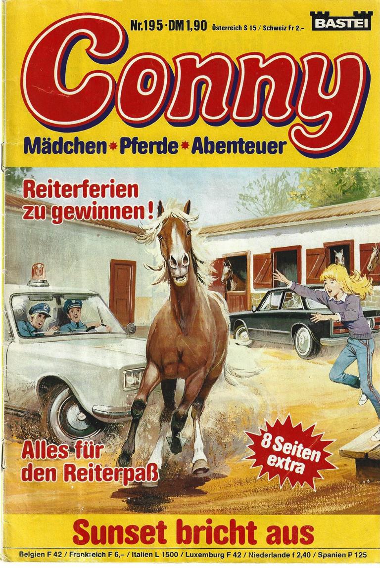 Conny - Mädchen - Pferde - Abenteuer Nr. 195Titel: Sinset bricht aus.Verlag: Bastei, Bergisch Gladbach ab 1983Comic-Heft 29 SeitenFormat: 17,5 x 25,8 cmZustand: Mittelteil Seite 13-28 fehlt, leichte Gebrauchsspuren