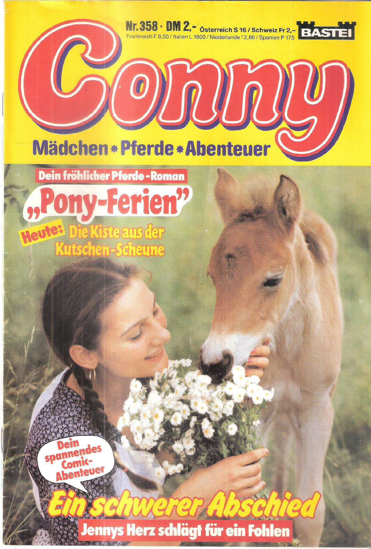 Conny - Mädchen - Pferde - Abenteuer Nr. 358- nicht mehr lieferbar!!! 8-23Titel: Ein schwerer AbschiedVerlag: Bastei, Bergisch Gladbach ab 1983Comic-Heft 29 SeitenFormat: 17,5 x 25,8 cmGewicht: 66 gZustand: gut, Seite 15-18 fehlt,