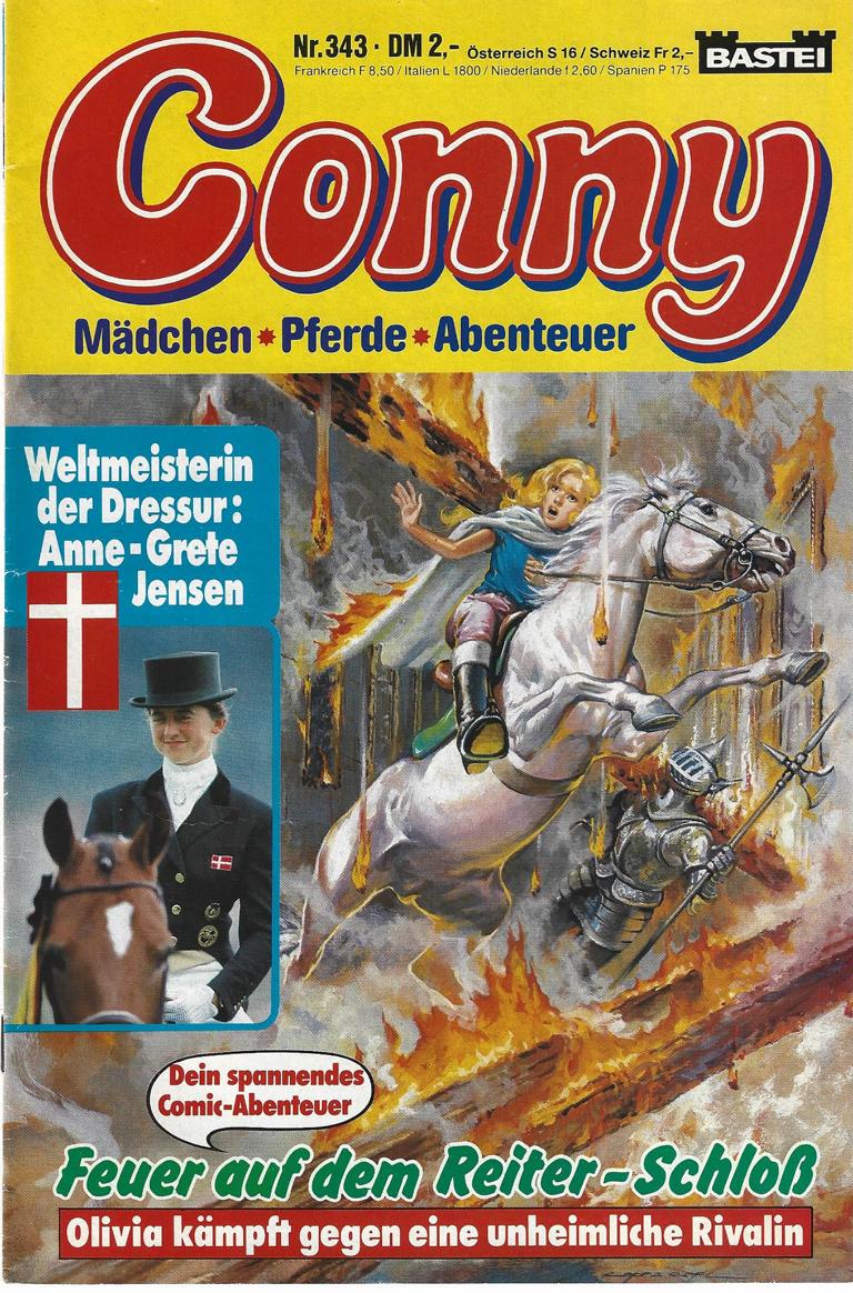 Conny - Mädchen - Pferde - Abenteuer Nr. 343Titel: Start ins Ungewisse.Verlag: Bastei, Bergisch Gladbach ab 1987Comic-Heft 29 SeitenFormat: 17,5 x 25,8 cmZustand: Mittelteil Seite 12-18 fehlt,sehr gut