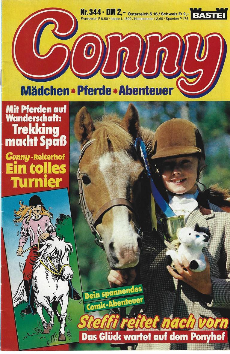 Conny - Mädchen - Pferde - Abenteuer Nr. 344Titel: Steffi reitet nach vorn.Verlag: Bastei, Bergisch Gladbach ab 1983Comic-Heft 29 SeitenFormat: 17,5 x 25,8 cmZustand: komplett, sehr gut