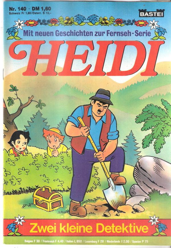 Titel: Heidi Nr. 140Zwei kleine DetektiveMit neuen Geschichten zur Fernseh - Serie Verlag: Bastei Heft, 31 Seiten Format: 18 cm x 26 cm Zustand: gebraucht, sehr gut
