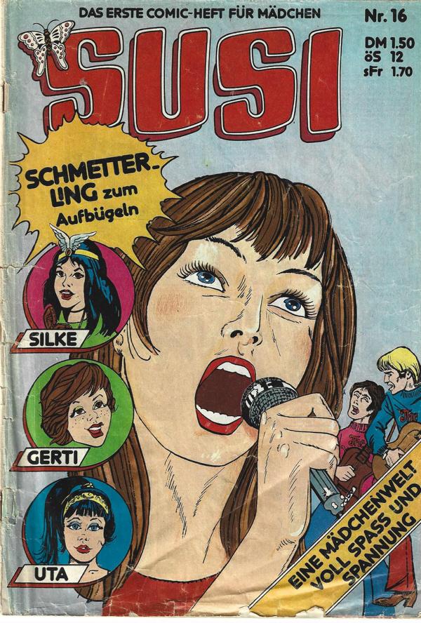 Susi Nr. 16Das erste Comic-Heft für Mädchenohne Schmetterling zum AufbügelnVerlag: Gevacur Verlag AG, Zug, 1976Comic-Heft 32 SeitenFormat: 18 x 26 cmZustand: deutliche Gebrauchsspuren