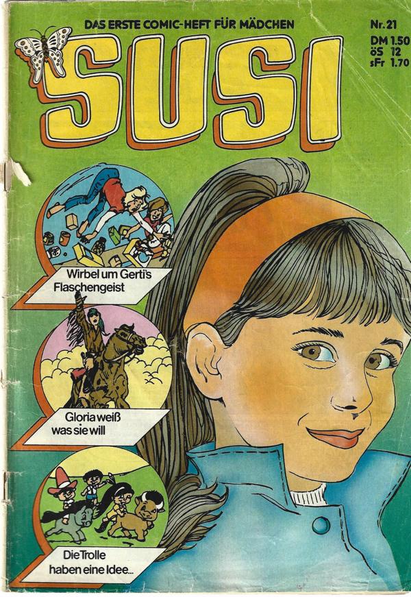 Susi Nr. 21Das erste Comic-Heft für MädchenVerlag: Gevacur Verlag AG, Zug, 1976Comic-Heft 32 SeitenFormat: 18 x 26 cmZustand: deutliche Gebrauchsspuren