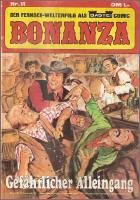 Bonanza Nr. 11 (Ka-rre) Bonanza Nr. 11 Gefährlicher Alleingang Verlag: Bastei Verlag Bergisch Gladbach Heft, 31 Seiten... 4,50 Euro (Kleinunternehmer im Sinne vom § 19 UStG. Es wird keine MWSt. ausgewiesen.)