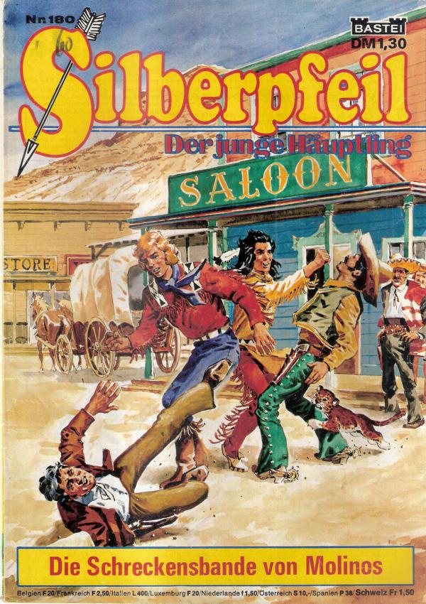 Silberpfeil der junge Häuptling Nr.180Titel: Die Schreckensbande von MolinosVerlag: Bastei Verlag Bergisch Gladbach 1973Heft, 31 SeitenFormat: 17,5 cm x 25,5 cm Gewicht: 55 gZustand: gut, leichteGebrauchsspurenComix -