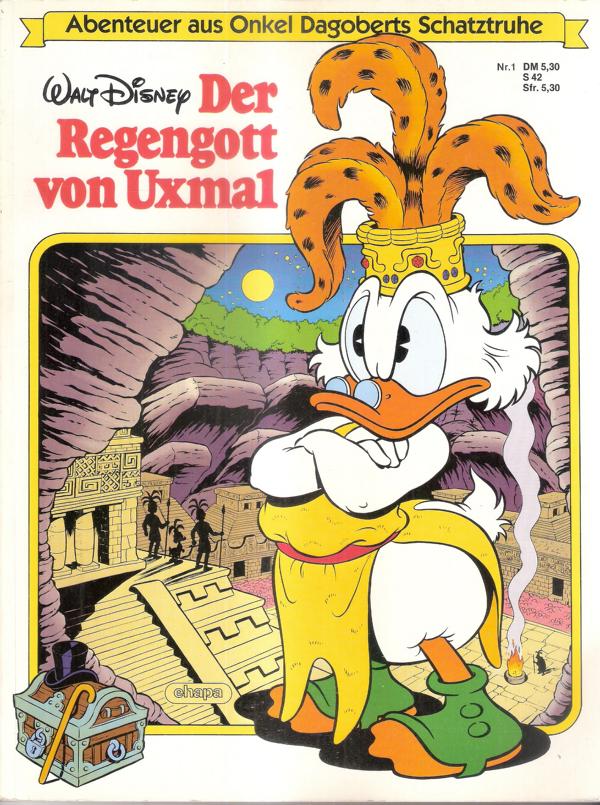 Titel: Abenteuer aus Onkel Dagoberts Schatztruhe Nr.1 Der Regengott Uxmal Walt Disney Verlag: Ehapa Verlag 2. Auflage 1983Format: 21,5 x 28,5 cmGewicht: 156 gZustand: gut, mit leichten GebrauchsspurenComic