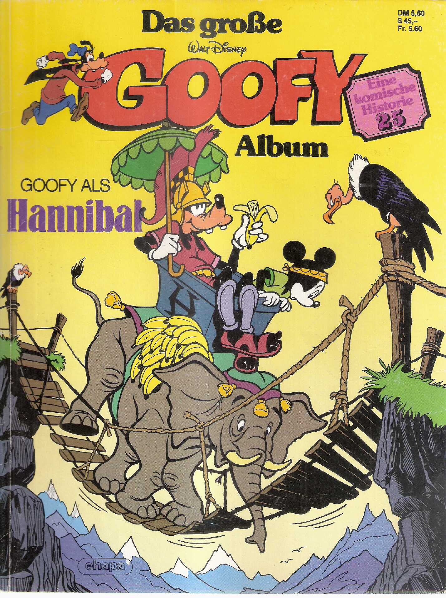Das große GOOFY Album Nr. 25Titel: Goofy als HannibalVerlag: Ehapa Verlag GmbH Stuttgart (c) 1985Softcover, 48 SeitenFormat: 21,5 x 28,5 cmGewicht: 145 gZustand: gut, leichte Gebrauchsspuren,Cover an den Ecken und Rücken leicht abgewetzt