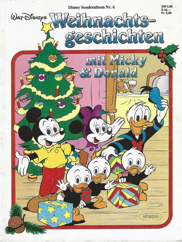 Disney Sonderalbum Nr. 6Weihnachtsgeschichten mit Micky & Donald.Text: Walt DisneyZeichnungen: Walt DisneyVerlag: Ehapa 1988Heft, 48 Seiten Format: 22 x 28,5 cmZustand: gut, leichte Gebrauchsspuren