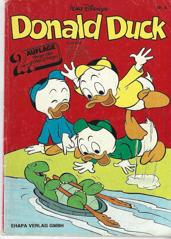 Donald Duck Nr. 004 - 2. Auflage Verlag: Ehapa 1975Comic-Heft 96 SeitenFormat: 13 x 18,5 x0,5 cmZustand: gut, leichte GebrauchsspurenComic
