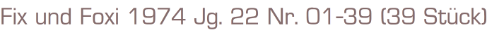 Fix und Foxi 1974 Jg. 22 Nr. 1 - 39(39 Hefte)von Rolf Kauka 39 Stück Comic-Heft à 39 SeitenFormat: 18 x 26 x 2cmGewicht: 2.800 gZustand: gut