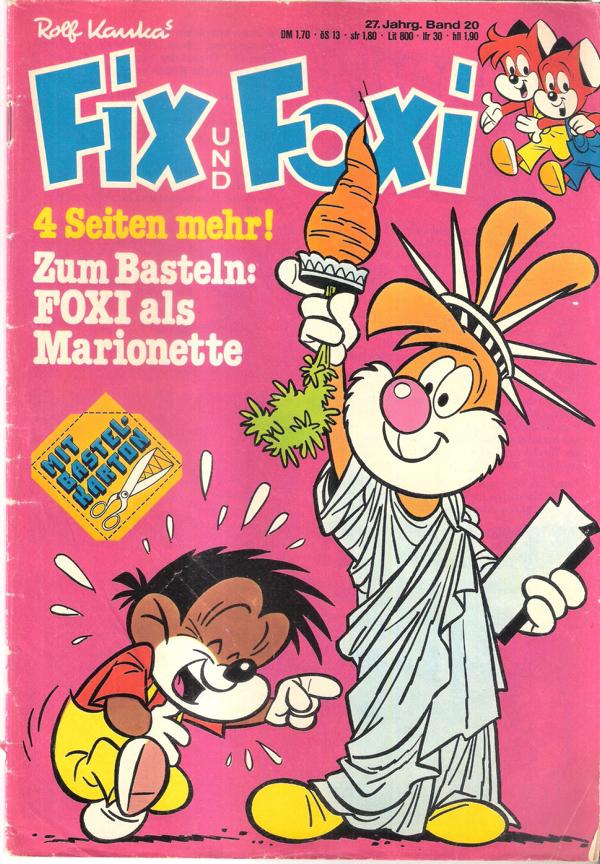 Fix und Foxi 27. Jg. Bd. 20/1979von Rolf Kauka Comic-Heft 39 SeitenFormat: 18 x 26 cmZustand: gut, leichte Gebrauchsspuren, mit Bastel-Karton