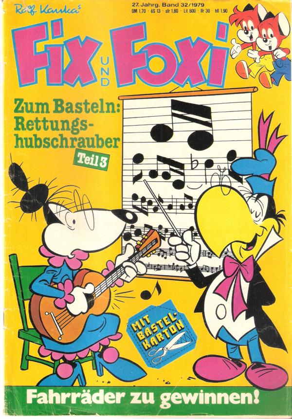 Fix und Foxi 27. Jg. Bd. 32/1979von Rolf Kauka Comic-Heft 39 SeitenFormat: 18 x 26 cmZustand: gut, leichte Gebrauchsspuren, mit Bastel-Karton