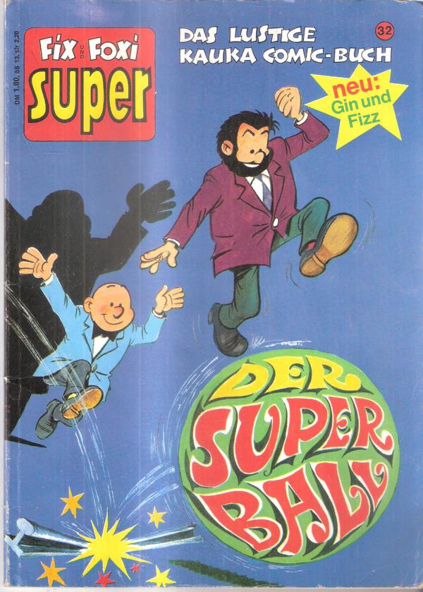 Fix und Foxi Super Nr. 32 Der SuperballDas lustige Kauka Comic-Buchvon Will & RosyVerlag: Rolf Kauka, Grünwald (c) 1970Comic Heft, 50 SeitenFormat: 18,5 x 26,3 cmZustand: gut erhaltenes Exemplarmit leichten Gebrauchsspuren