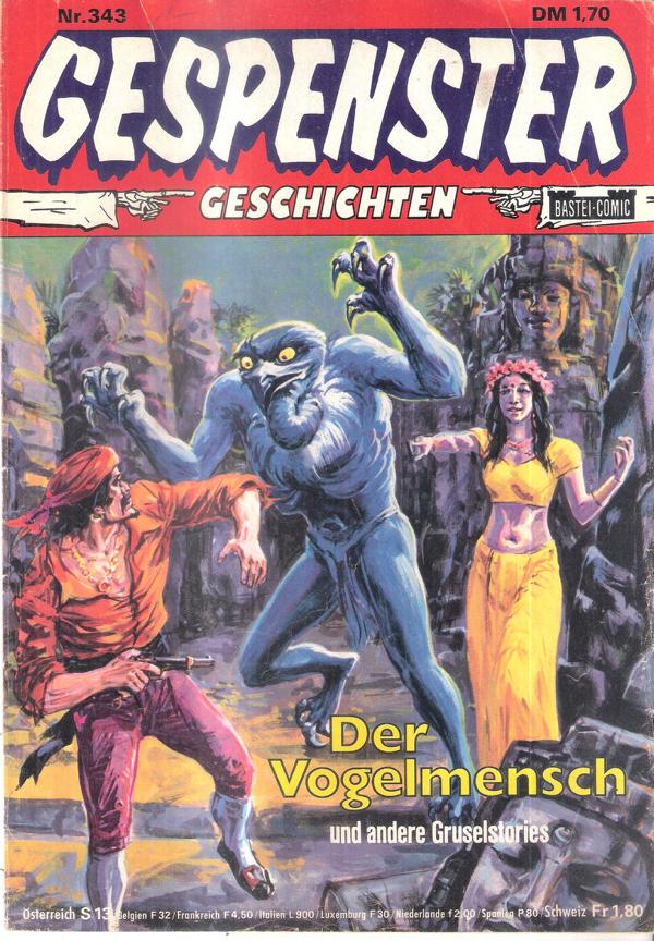 Gespenster Geschichten Nr. 343Titel: Der Vogelmensch und andere GruselstoriesVerlag: BasteiHeft 31 SeitenFormat: 17,5 cm x 26 cmGewicht: 55 gZustand: gut, leichte GebrauchsspurenComic - Gespenstergeschichten