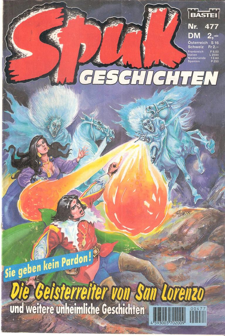 Spuk Geschichten Nr. 477Titel: Die Geisterreiter von San Lorenzo und weitere unheimliche Geschichten Verlag: BasteiHeft, 30 SeitenFormat: 17,5 x 26 cmGewicht: 55 gZustand: gut Comic - Spukgeschichten