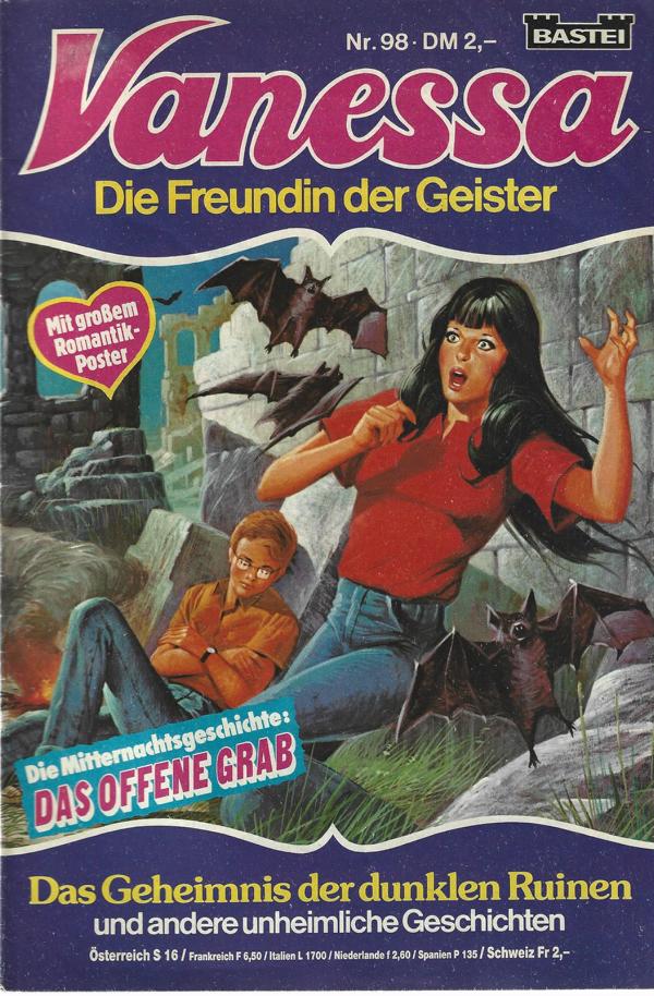 Vanessa Nr. 98 Mit PosterDie Freundin der Geister Titel: Das Geheimnis der dunklen Ruinenund andere unheimliche GeschichtenVerlag: BasteiHeft 30 SeitenFormat: 17,5 cm x 26 cmZustand: gut, leichte Lager- bzw GebrauchsspurenComic - Vanessa
