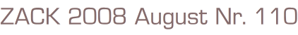ZACK 2008 August Nr. 110 Text und Zeichnungen von Gir & MoebVerlag: Ehapa Verlag Comic Heft Softcover 66 SeitenFormat: 21 x 29,5 cm Zustand: gut, leichte Gebrauchsspuren