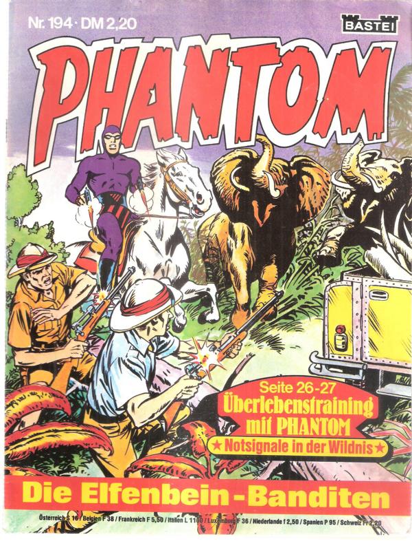 Titel: Phantom Nr.194Die Elfenbein-Banditenvon Lee FalkVerlag: Bastei 1981Heft, 50 Seiten Format: 21 cm x 28 cm Gewicht: 102 gZustand: gut Comic Sammler