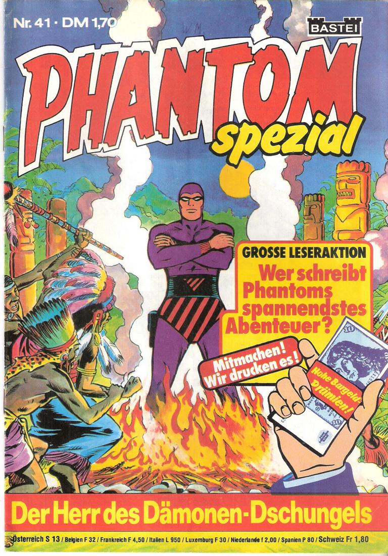 Titel: Phantom spezial Nr. 41 Der Herr des Dämonen-SchungelsVerlag: Bastei 1981Comic Heft, 31 SeitenFormat: 17,5 x 26 cmGewicht: 55 g Zustand: gut, mit leichtenGebrauchsspurenComic