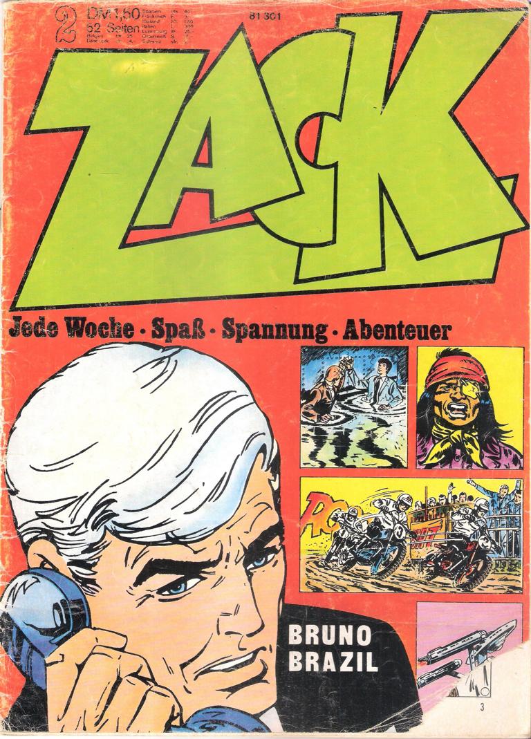 ZACK Die großen Abenteuer unserer ZeitNr. 02 / 1973Inhalt: Bruno BazilVerlag: Koralle Verlag 1973Comic Hefte 49 SeitenFormat: 21 x 28 cmGewicht: 104 gZustand: Cover beschädigt,Seite 25-28 fehlt Comic