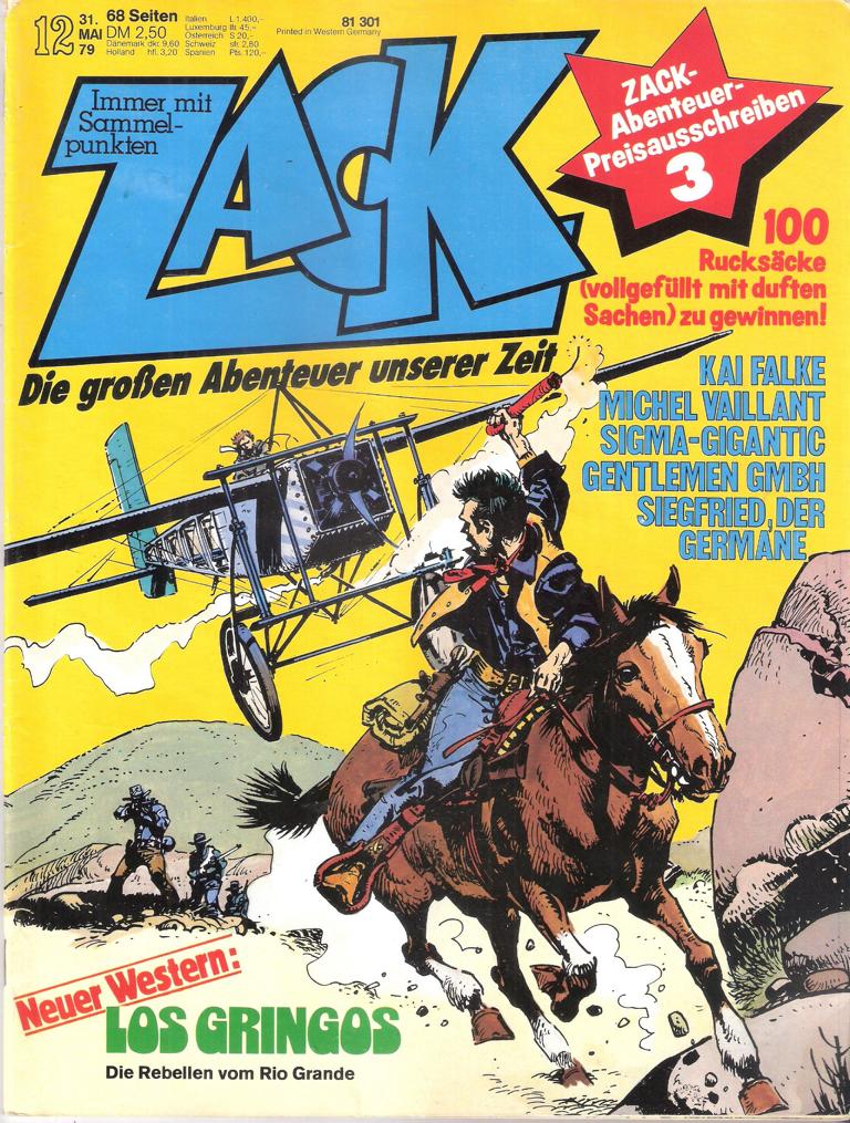 ZACK Die großen Abenteuer unserer ZeitNr. 12 / 1979Inhalt: Kai FalkeMichel VaillantSigma-GiganticLos GringosSiegfried, der GermaneGentlemen GmbHVerlag: Koralle Verlag 1979Comic Hefte 66 SeitenFormat: 21 x 28 cmGewicht: 120 gZustand: gut, leichte Gebrauchsspuren,Sammelpunkete fehlenComic