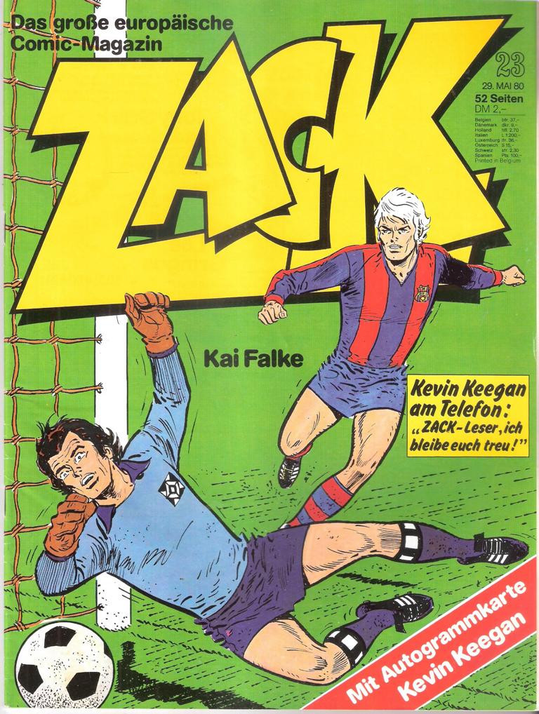 ZACK Die großen Abenteuer unserer ZeitNr. 23 / 1980Inhalt: Kai FalkeMit Autogrammkarte von Kevin Keeganund vielen anderen mehrVerlag: Koralle Verlag 1980Comic Hefte 50 SeitenFormat: 21 x 28 cmGewicht: 104 gZustand: gebraucht, sehr gutComic