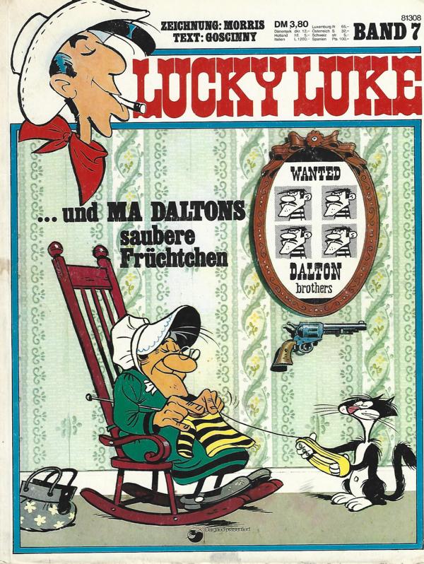 Lucky Luke Band 07 Titel: ... und MA DALTONS saubere Früchtchen.von: Morris + GoscinnyVerlag: Koralle Verlag Berlin 1975Comic 46 SeitenFormat: 21,5 x 28,5 cmZustand: gut, leichte Gebrauchsspuren, Cover fleckig