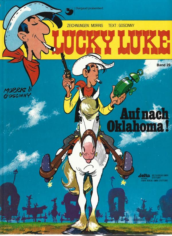 Lucky Luke Band 29von: Morris + GoscinnyTitel: Auf nach Oklahoma!Verlag: Delta Verlag Stuttgart 1981Comic Hardcover 46 SeitenFormat: 21,5 x 28,5 cmZustand: sehr gut