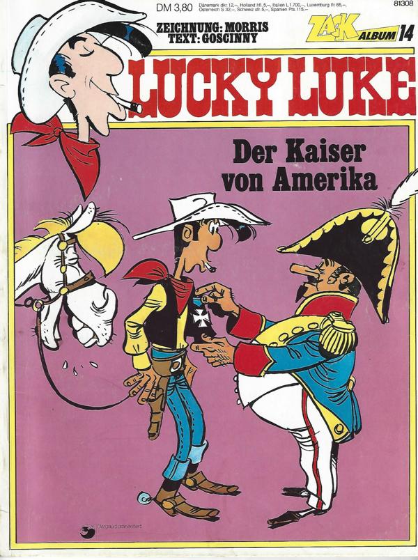 Lucky Luke Zack Album Nr.14 Titel: Der Kaiser von Amerikavon: Morris + GoscinnyVerlag: Koralle Verlag Berlin 1976Comic 46 SeitenFormat: 21,5 x 28,5 cmZustand: gut, leichte Gebrauchsspuren