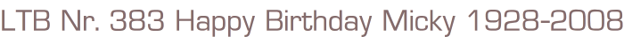 Walt Disneys Lustiges Taschenbuch Nr. 383Titel: Happy Birthday Micky 1928-2008mit RückenbildVerlag: Egmont Ehapa Verlag 2008Taschenbuch 254 SeitenFormat: 12,5 x 19 x 1,5 cmZustand: sehr gut Comix - Walt Disney - LTB -