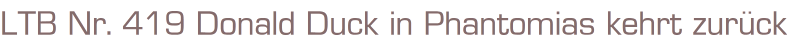 Walt Disneys Lustiges Taschenbuch Nr. 419Titel: Donald Duck in Phantomias kehrt zurück mit RückenbildVerlag: Egmont Ehapa Verlag 2011Taschenbuch 254 SeitenFormat: 12,5 x 19 x 1,5 cmZustand: sehr gut Comix - Walt Disney - LTB -