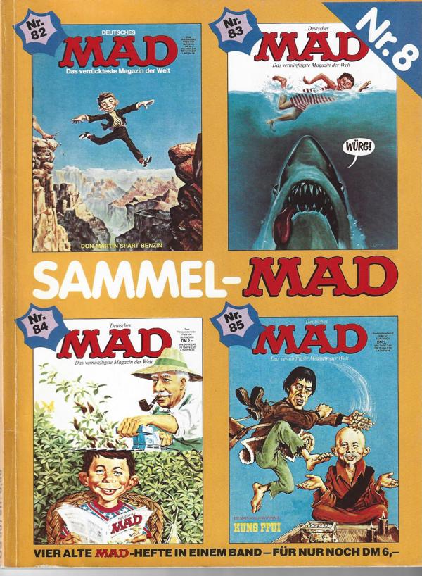 MAD Nr. 82,83,84,85 Sammel-MAD Nr. 8Das vernünftigste Magazin der WeltVerlag: Williams Verlag GmbH HamburgMagazin je 33 SeitenFormat: 20 cm x 27 x 1 cmZustand: sehr gut,