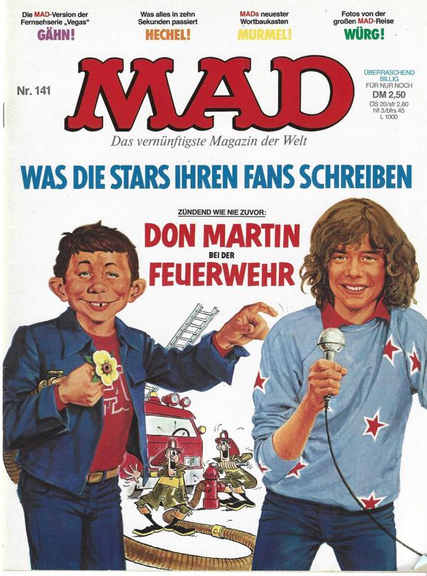 MAD Nr. 141Das vernünftigste Magazin der WeltTitel: Was die Stars ihren Fans schreiben.Don Martin bei der Feuerwehr.Herausgeber: Klaus RechtRedaktion: Herbert FeuersteinVerlag: Williams Verlag GmbH HamburgComic Heft Format: 20,5 x 27 cmZustand: gut, Papier leicht nachgedunkelt